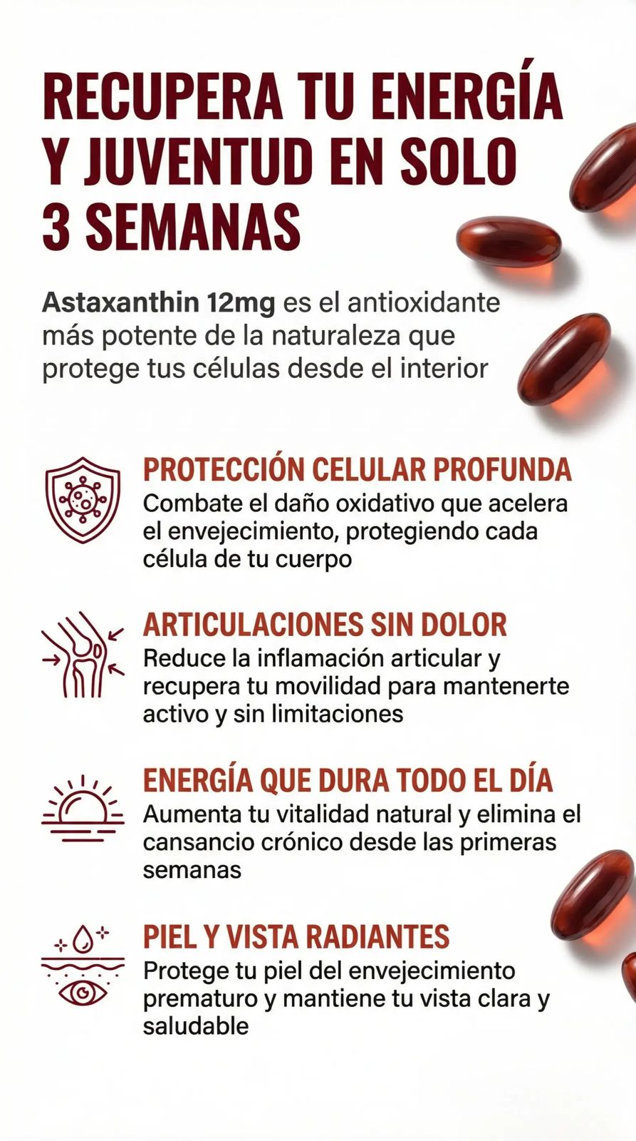 Pero la Astaxantina ofrece una solución natural, potente y efectiva.