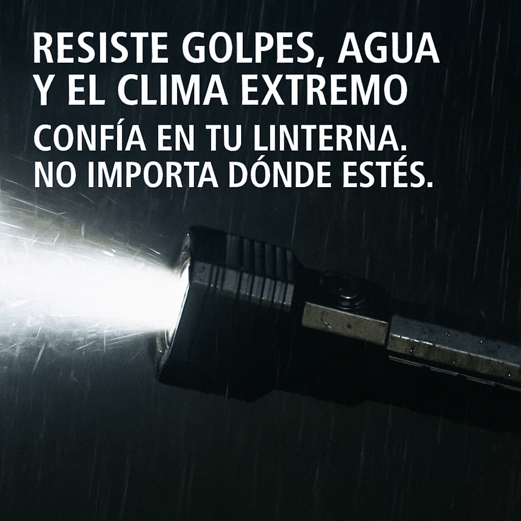 💪 Resiste golpes, agua y el clima extremo. Usa tu linterna con confianza, sin importar el lugar.